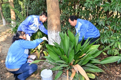 护一颗树暖一个冬,随着气温的逐渐下降,树木开始进入休眠期。为保证树木顺利越冬,控制病虫害,近日,由各支部联合组织“树木穿新衣, 温暖增颜值”活动,对厂区树木进行刷白工作,为树木披上一层温暖的“新衣”。