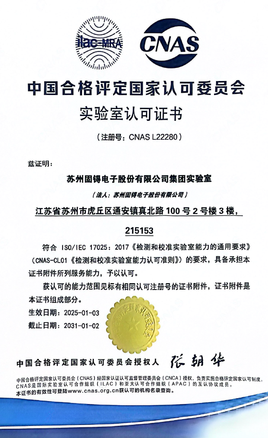 | Ø | 主要有可靠性实验和失效分析实验两块主要业务。实验室在2025年1月通过CNAS的认证,CNAS22280。 |