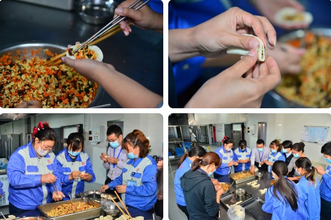 家人们大显身手,个个都是能工巧匠,薄薄的饺子皮不仅是裹着甜美的馅,更将固锝大家庭紧紧团结在一起。
