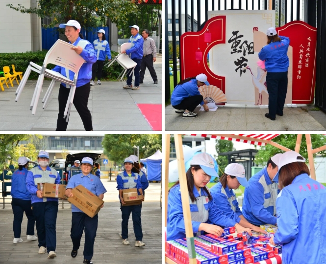 “重阳套福”,每位长辈8个圈圈,站在指定线外进行套圈,套中即可拿走,每位参与者都可获得一份小礼品。长辈们一个个信心十足,誓要拿到心仪的物品。“诶呀,就差一点!”“哈哈,成功了……”热闹欢快的气息在这里肆意流淌。大家吃着甜甜的重阳糕,拿着赢得的丰盛奖品,那一张张欢乐的笑脸不正是我们的全部期望吗?