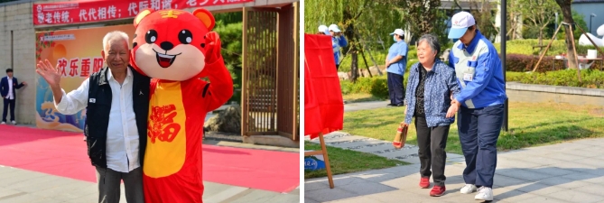 长辈们来啦!大家一齐鞠躬问候:“下午好!”并贴心地告诉他们活动的具体位置。见到腿脚不方便的长辈,忙上前搀扶。志愿者热情的微笑和关怀的举动温暖人心。