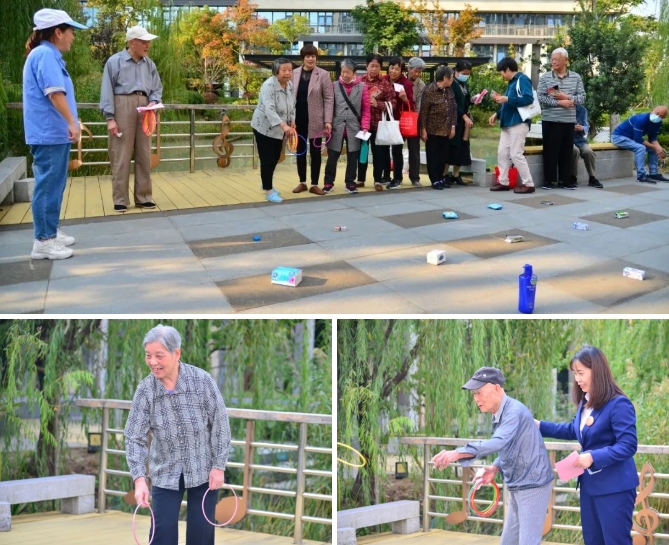 “欢乐福园,狂欢游戏”,重阳游园会正式开场!趣味十足的小游戏,引得长辈们纷纷驻足,兴趣满满。工作人员现场引导长辈们玩游戏并介绍具体规则。每参加一个游戏都可获得盖章,最后则根据盖章数量领取相应的奖品。