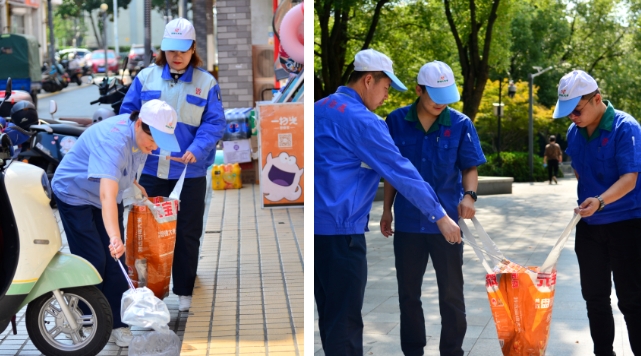 大家带上工具和环保垃圾袋,兵分两路,干劲十足。沿途弯腰拾捡道路上的废纸、果皮、烟头等各种垃圾,当然隐藏在绿化带中的垃圾也逃不过志愿者的“火眼金睛”,顺势停下探身去捡,不放过任何死角。家人们将凡事彻底的精神落实到底,捡起一片垃圾,让街道少一点脏乱,多一份干净。在志愿者们的认真清洁下,手中拎着的环保袋里 “战利品”越来越多,收获满满。回首再看,人行道焕然一新,街边的绿化带再也没有垃圾的“点缀”,变得更加绿意盎然。