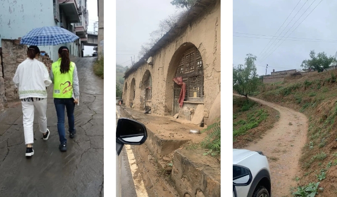 发放完助学金,此时的吴堡已开始下起了小雨,还需要走访14个小学孩子的家庭。房子大部分是在山上,钻山洞,爬山坡,感谢老师的热心护送。走访时详细询问学生的家庭成员、收入现状、学习情况等,对调查的情况一一记录在册,并拍照留存,以做好后期的资助工作。