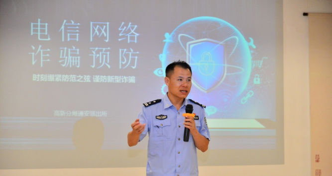 讲座中,冯警官从什么是网络电信诈骗、网络电信诈骗的现状和特点及网络电信诈骗的常见类型三个方面展开,全方位指导公司员工如何避免被诈骗。冯警官结合实际案例,系统归纳犯罪分子常用的诈骗方式和手段,细致分析受害者上当受骗的原因,仔细讲解各种防范对策及被骗后的补救措施,教育员工们在生活中做到不轻信、不转账、不上当,遇到类似诈骗要及时报警,更好地保护自己的财产安全。