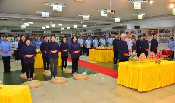 8月30日,大家长、滕总等公司领导带领公司副经理及以上干部、支部书记、人文教育组长、江苏明伦源及江苏圣源庠等代表在总厂明德堂隆重举行2023中元祭祖典礼。