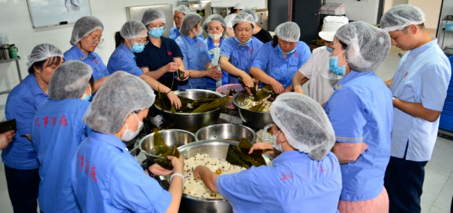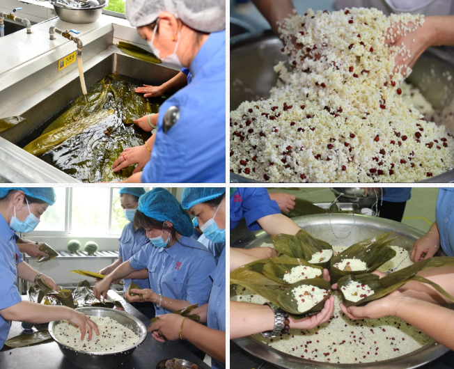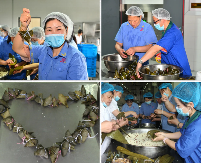 迎端午、包粽子,食堂内节日气氛浓烈,家人们干劲满满!还等什么,大家一起包粽子喽!