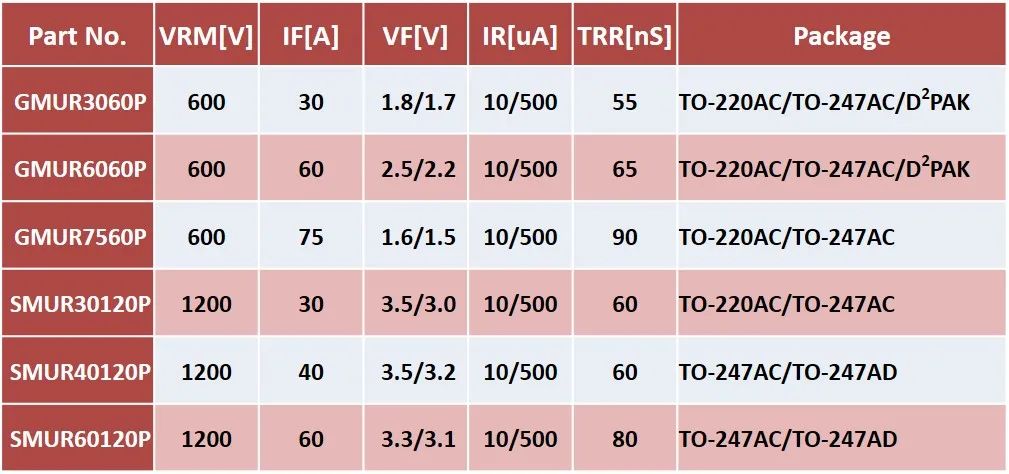 爱游戏app官网电子600V,1200V快恢复功率二极管产品系列,可以提供4种不同的产品封装(TO-220AC、D2PAK、TO-247AC, TO-247AD ),优化反向恢复时间,提升高温反向漏电特性,以达到优越的开关损耗以及直流损耗,提高了电动汽车、混合动力汽车、通信、工业和商用等电源类产品的使用效率。