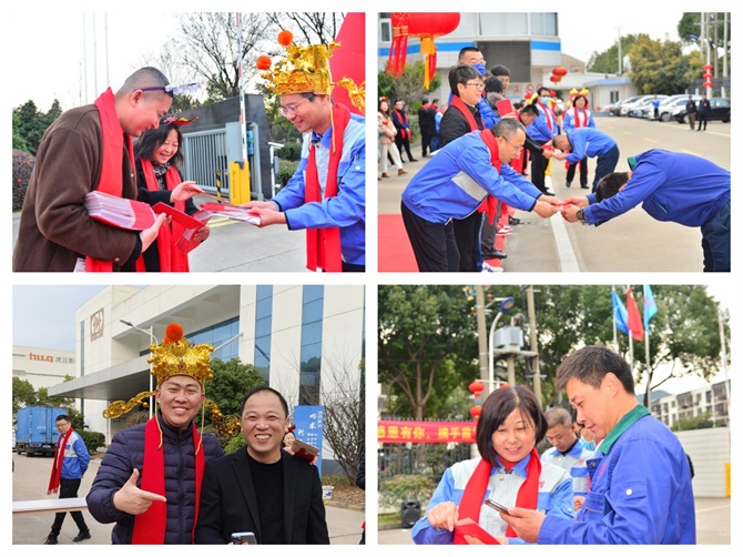 开门见喜,龙贺新春!在这个充满喜悦和希望的日子,公司董事长吴炆皜、总经理滕有西带领管理团队,一起迎接家人们,为返岗的员工送上新春的祝福。