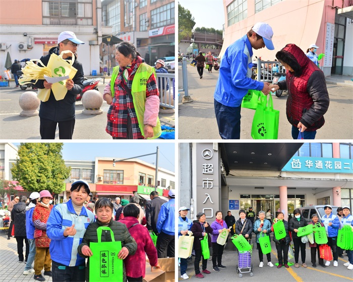 瞧!居民们满心欢喜地领取环保袋,放入购置的生活用品,减少一次性塑料袋的使用,践行低碳环保从现在开始。