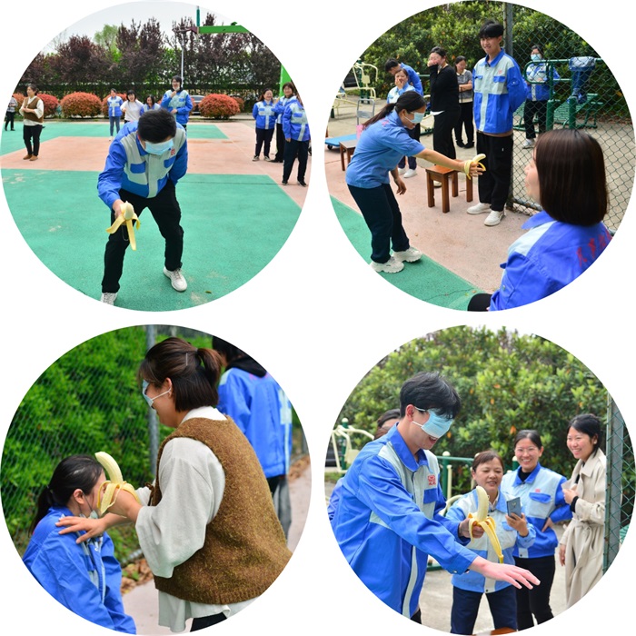 不远处传来的笑声,把我们吸引到了“蒙眼喂食”的现场。“一圈,两圈,三圈,准备,开始!”蒙眼的家人无惧天旋地转,拿着香蕉,即刻出发。看那儿!俭廉支部的乔利雪“两眼摸黑”找队友,从最东边摸至最西边,历经“千辛万苦”总算顺利“投喂”。另一边忠实支部的李桃更是“找不着北”,与其他选手背道而驰,拿着香蕉直奔栏杆,让队友差点“笑弯了腰”。