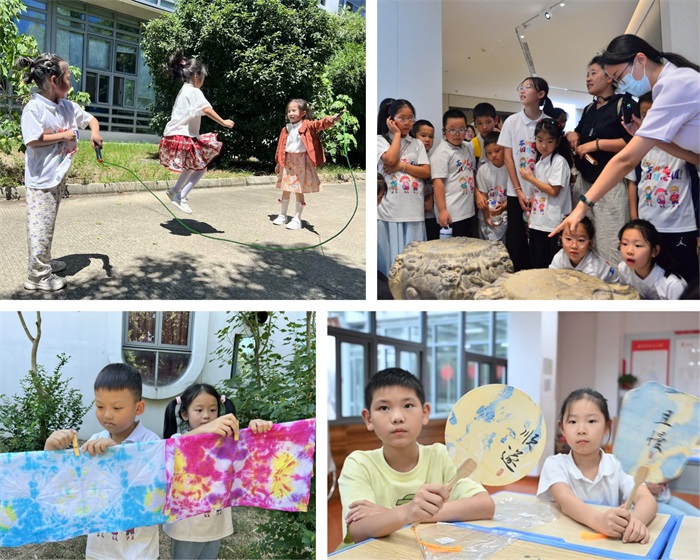 在老师的陪伴下,宝贝们参加体育活动、学习舞蹈,收获了“新技能”、新朋友;学习经典,习礼仪增智慧,让中华优秀传统文化滋润内心;开展社会实践,参观苏州博物馆(西馆),参与扎染和漆扇等非遗手工艺品制作等课程,开阔眼界、激发兴趣。