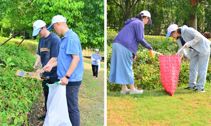 走过、路过不能错过,地上的烟头、废纸屑,隐藏在绿植中的矿泉水瓶,白色塑料袋等,一一被家人们“揪”出。