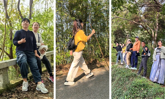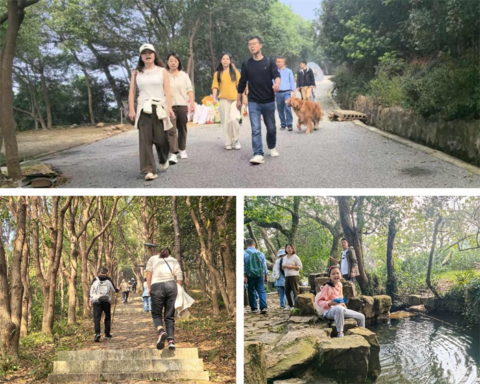 大家沿着山路,一步一个脚印,相互鼓励,相互扶持,满山的美景与家人们坚定迈进的身影,构成了人与自然和谐共生的美好画卷。站在顶峰,登高远眺,万顷太湖水天一色、湖鸥船影、古村人家尽收眼底。