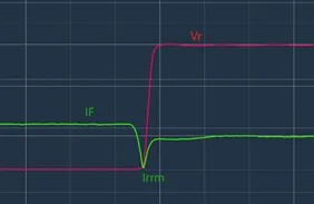 FRD应用中,除开正向导通损耗,反向恢复损耗也非常重要。二极管整体损耗主要由这两者共同决定。在应用中需要根据实际情况,来评估FRD的Trr选择是否合适。