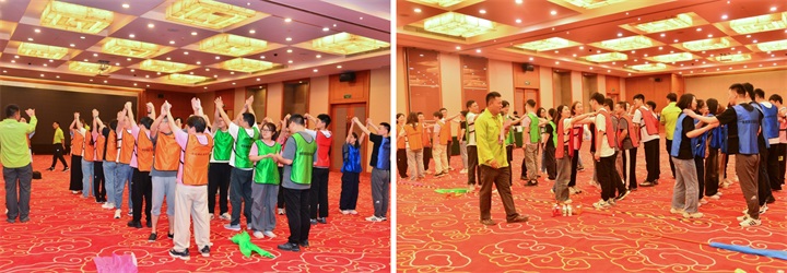如果说开营仪式是“破冰”的序章,那么接下来的互动环节才是真正的“熔炉”。 “水果连连看”“步步高升”,让协作基因融入每一次接力、每一回配合。我们手拉手,在 “幸会” 的呼应里,在 “加油” 的呐喊中,将信任拧成绳,把团队炼成钢,这是青春该有的滚烫!