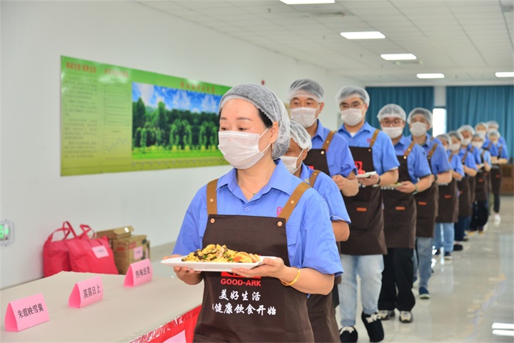 后厨里,新鲜的时蔬、嫩滑的豆腐、菌菇等成为今天的主角。最让人惊喜的是,部分食材来自公司“幸福农场”的有机小菜园——它们带着泥土的芬芳,从田间到餐桌,几乎“零公里运输”,每一口都是自然的馈赠。