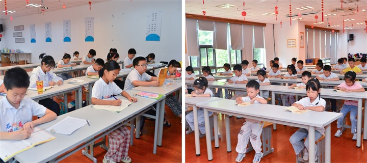 结营仪式上,孩子们用精心准备的节目告别这段时光 —— 舞蹈串烧活力满满,书法展示笔力十足,还有诵读声,回荡在明伦楼的每一个角落。当老师把印着每个孩子笑脸的纪念册送到手中, 这个夏天已经悄悄种下了那么多美好的记忆。