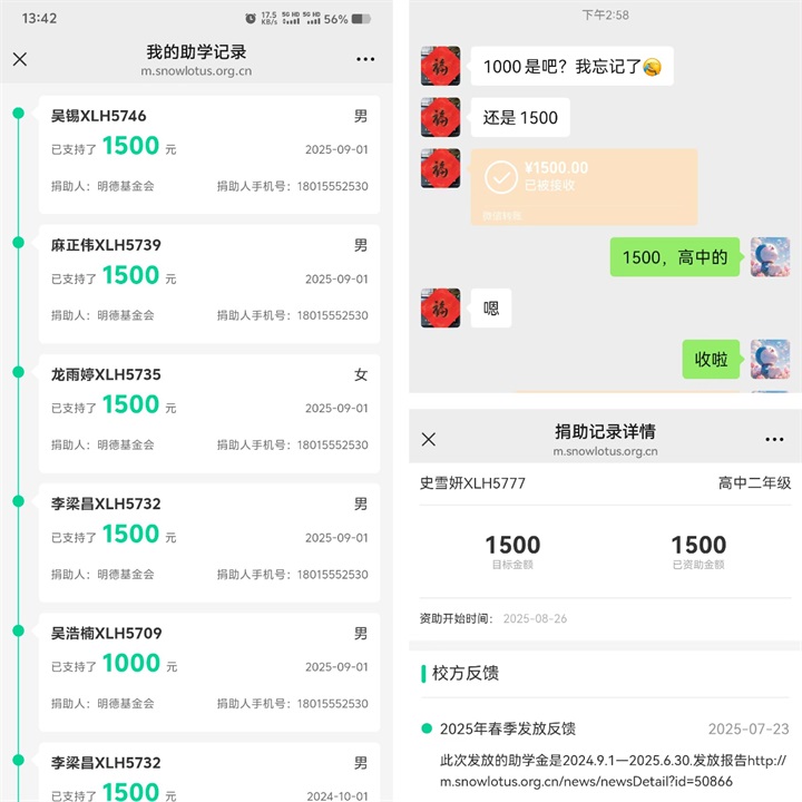 张洪海率先结对资助高中生,熊明刚家人认领"山里的娃",谈玉芹、何加绘、郑永勇、王宇萍等积极参与,苏州明德公益基金会对5个孩子的助学帮扶,还有一些支部的加入……这些看似平凡的举动,串起了不平凡的十年。16名学子在爱心的滋养下继续学业,这个数字或许不大,却承载着时光沉淀的深情厚谊。