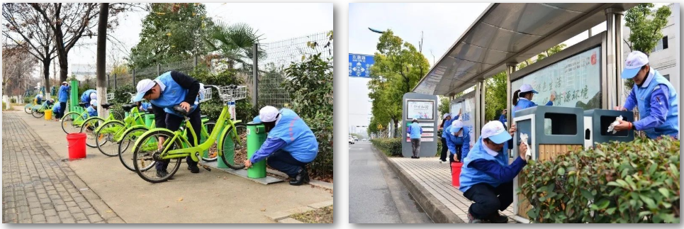我们清洁公交站台、清洁环保自行车,呵护公司周边地区及公共设施,固锝志愿者的足迹遍布周边社区、街道以及景区等。