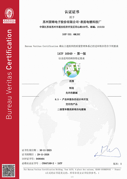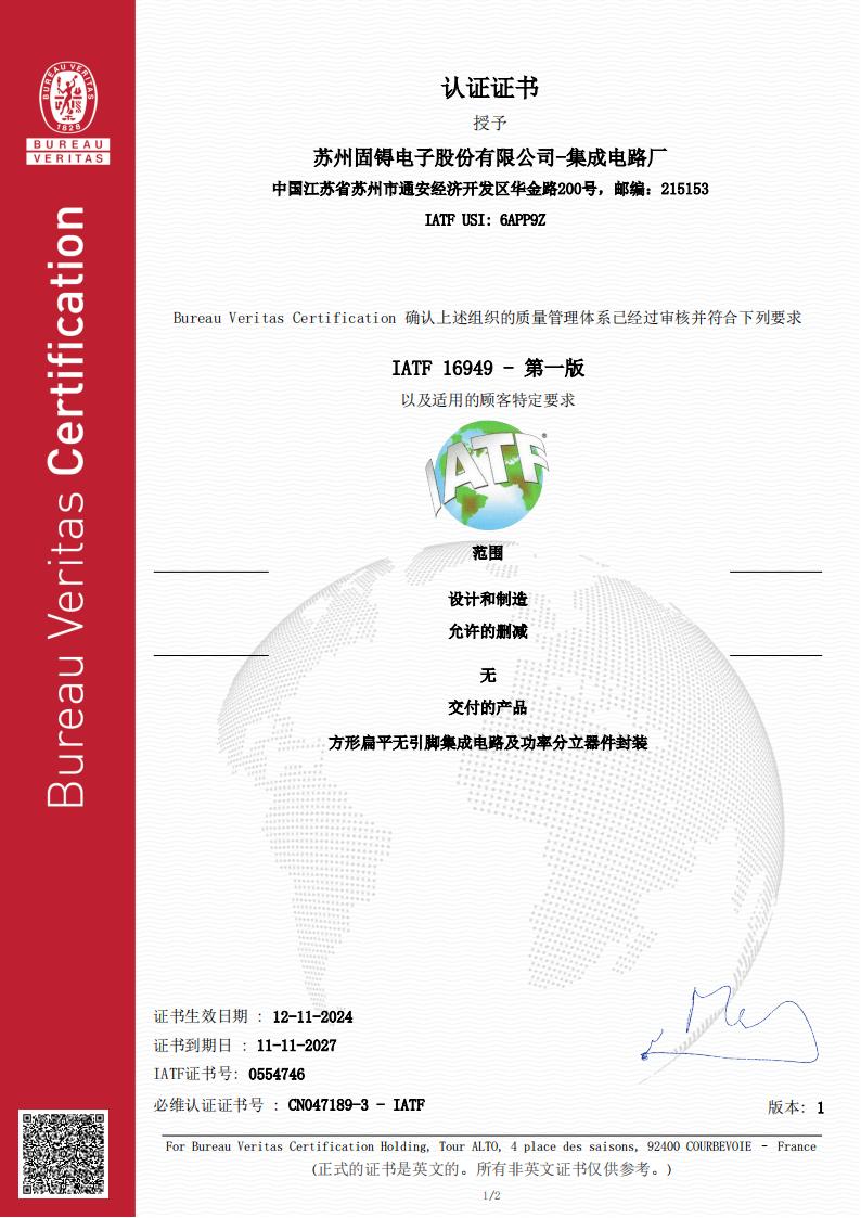 - 04ISO9001证书 - 集成电路厂+通锡路31号+表面电镀科技厂